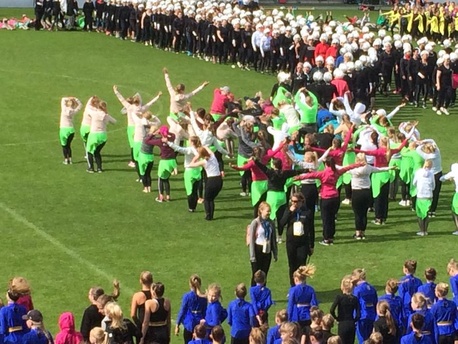 ![]() "Energian ympäröimä" -kenttäohjelman harjoitus. Ohjelman koreografi on Eerika Laalo-Häikiö | ![]() Finaalin harjoitus |