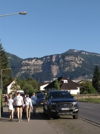 Majoituskoulumme sijaitsi Höchtsissä, aivan Sveitsin rajalla. Maanantaina kävimmekin kävelemässä ja katselemassa maisemia Sveitsin puolella! Lisäksi kävimme tutustumassa messualueeseen, jonne matkaa oli noin 11 majoituskoulultamme. Matkat taittuivat viikon aikana bussilla, jotka olivat tupaten täynnä sveitsiläisiä, brittejä ja suomalaisia osallistujia.