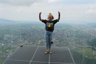 Tiistain sää näytti etukäteen selkeältä ja aurinkoiselta, joten päätimme lähteä ihastelemaan Alppimaisemaa Karren - näköalapaikalta. Gondolihissimatka korkealle kauhistutti etukäteen, mutta perillä meidät palkitsi huikea näköala alas laaksoon, jossa Dornbirn sijaitsi.